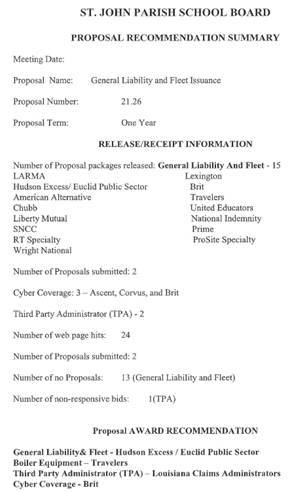ITEM 3. Public Comment. Mrs. Janice Gauthier – Request approval of Proposal 21.26 General Liability & Fleet Insurance