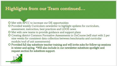 The following information was presented to the Board by Drenean Brown and Rachael Chaney, Supervisors of Curriculum: