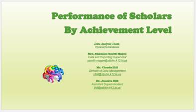 Ø Testing & Accountability Data ~ Claude Hill, Director of Data Management; Dr. Juanita Hill, Assistant Superintendent; Shannon Smith-Magee, Data & Reporting Supervisor (12:15-1:30 p.m.)