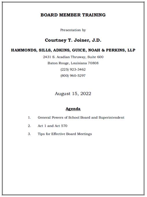 Ø Powers Duties and Responsibilities of the Board ~ Courtney Joiner, Attorney (1:30-2:45 p.m.)