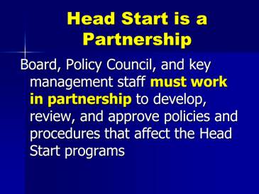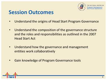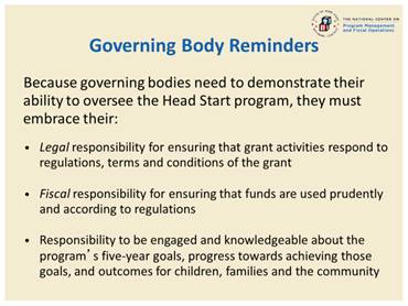 Ø Head Start Governance Training ~ Melissa Watson, Director of Early Childhood (9:15-10:15 a.m.)