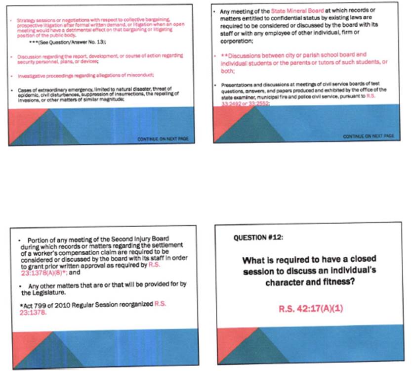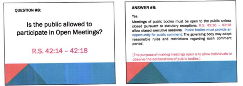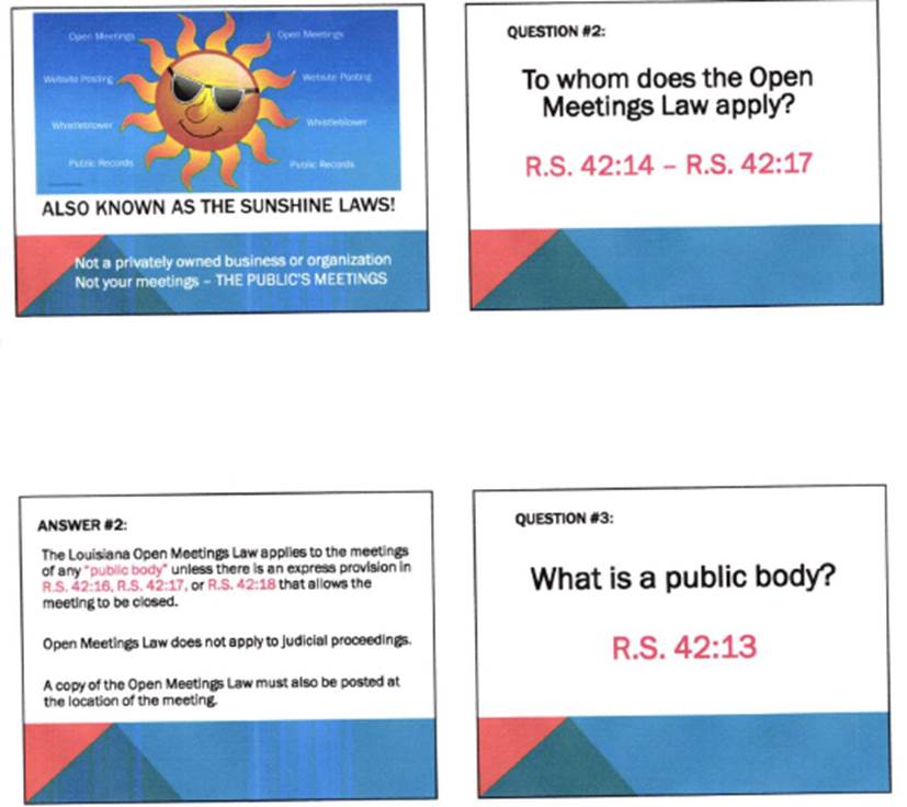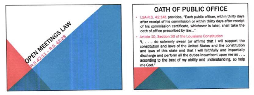 Ø Open Meetings Law ~ Orenthal Jasmin, Asst. District Attorney, St. John the Baptist Parish (10:00-11:30 a.m.)