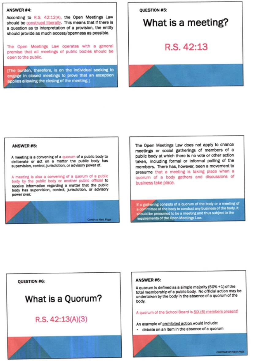 Asst. District Attorney Orenthal Jasmin, led the following instruction regarding Open Meetings Law: