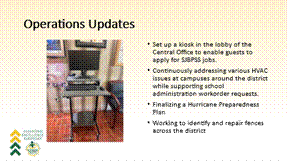 Holden – Asked for an update on summer maintenance and also that the Student Code of Conduct and Attendance Handbook be emailed to the Board ASAP.